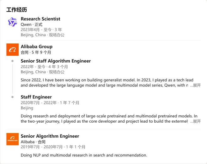2019年,他以应届生身份加入阿里达摩院智能计算实验室,参与M6多模态模型研发;2022年,主导OFA与ChineseCLIP,同年接棒千问技术负责人;2025年,32岁晋升为阿里史上最年轻P10技术专家。