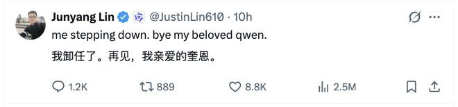 报道也再度证实,林俊旸在X平台上的告别帖非常简单,且阿里官方对此拒绝评论。