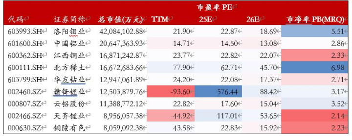 华友钴业25年全年上涨136.71%,主要为扩产预期叠加涨价逻辑背景下的拔估值。与A股其他矿业公司相比,其市盈率略高于中国铝业,与洛阳钼业基本相当。市净率略低于中国铝业。
