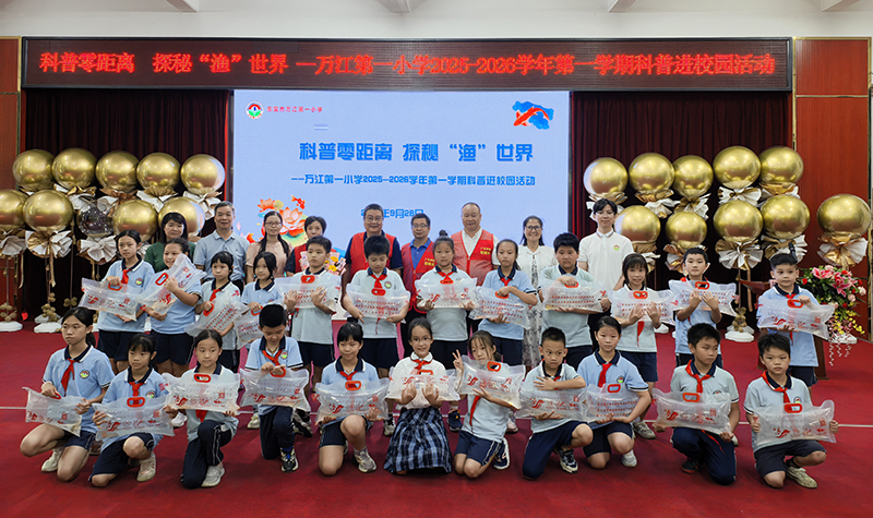 活动精心设置科普讲座与互动两大环节。在阶梯教室开展的“科普零距离,探秘‘渔’世界”专题讲座上,科普人员用生动易懂的语言、与小朋友互动问答的方式,将各类水生物的主要特征、人类对它们的开发利用等专业知识深入浅出地拆解,并引导孩子们在日常生活中注重保护渔业资源。科普人员还结合小学课本中和鱼有关的古诗词、成语等进行了渔业传统文化的宣讲。孩子们听得津津有味,纷纷举手回答问题,现场气氛热烈。在互动环节,科普人员讲解了鱼缸中养殖锦鲤的注意事项,并赠送小鱼苗给在场的同学们。