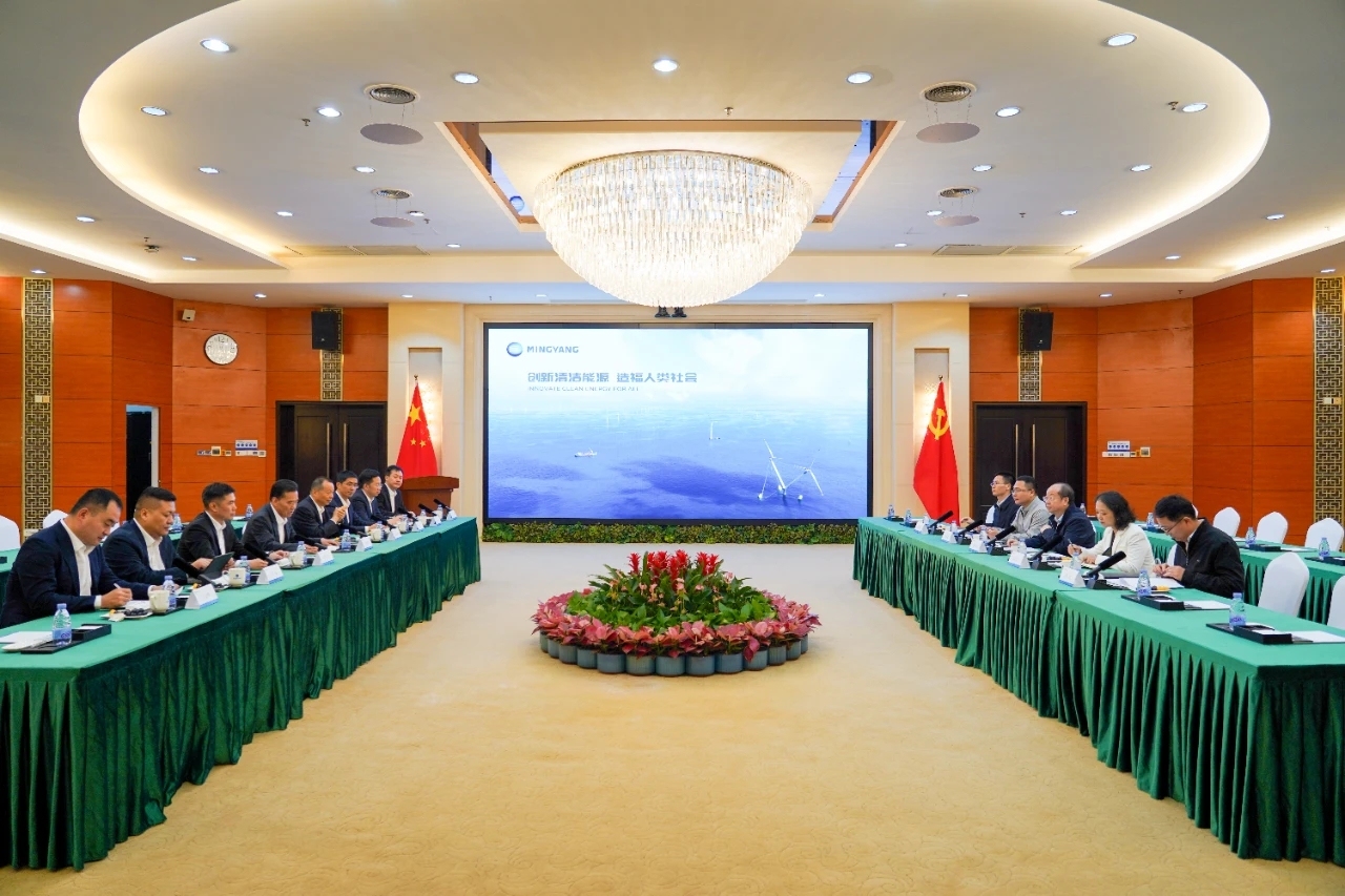 张传卫对张帆一行到访明阳集团表示欢迎,对广东能源集团长期以来的支持与信任表示感谢,并介绍了明阳集团战略规划、科技创新与未来布局有关情况。他表示,明阳集团始终以科技创新为核心驱动力,致力于新能源技术的迭代升级,期待与广东能源集团进一步深化协同合作,拓展合作维度与深度,共同助力海上风电等新能源产业高质量发展。