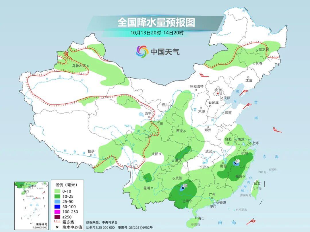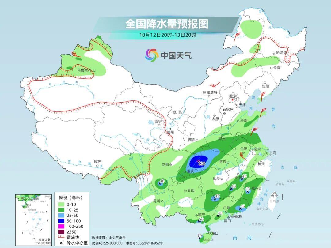 后天晚上至15日白天,四川东北部、重庆中北部至山东南部、江苏北部等地仍然会有中到大雨、局地暴雨现身。