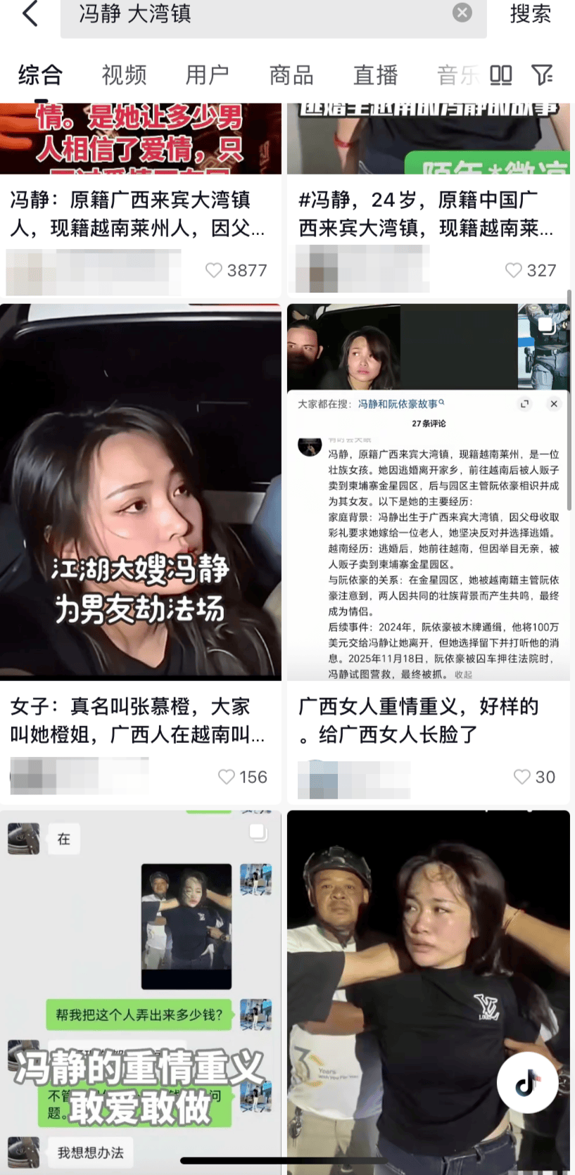 随后,国内一些自媒体结合相关画面编撰、传播诸如“江湖最后的大嫂”等视频,其在讲述中称,负责递枪帮助囚犯越狱的女子叫冯静,是来自广西来宾市兴宾区大湾镇的壮族姑娘。不少自媒体配上悲壮的音乐,讲述了冯静父母为彩礼,将她嫁给一个老头,冯静不从并沿着山路选择逃婚。最后,她跑到越南,之后,在一些风月场所,她认识了越南当地的一位“大哥”并成为“大哥”的女人……如今,“大哥”有事,“江湖最后的大嫂”冯静一人拿着一把枪冒险劫囚越狱……