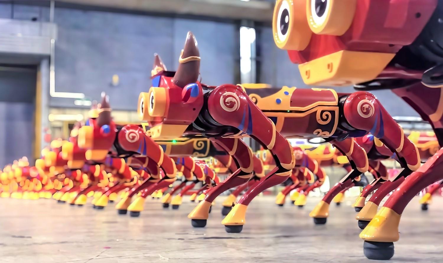 这是 2021 年春晚上,宇树「机器牛」的集群舞: