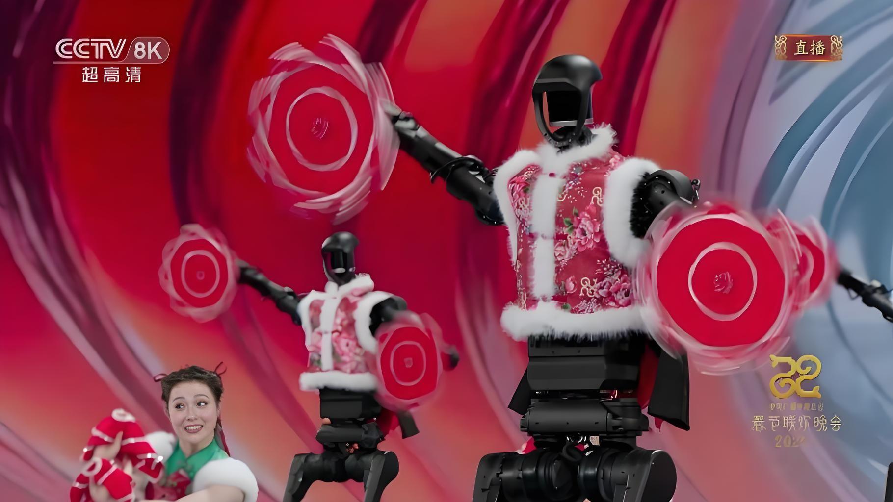 2025 年春晚人形机器人的扭秧歌、抛手绢:
