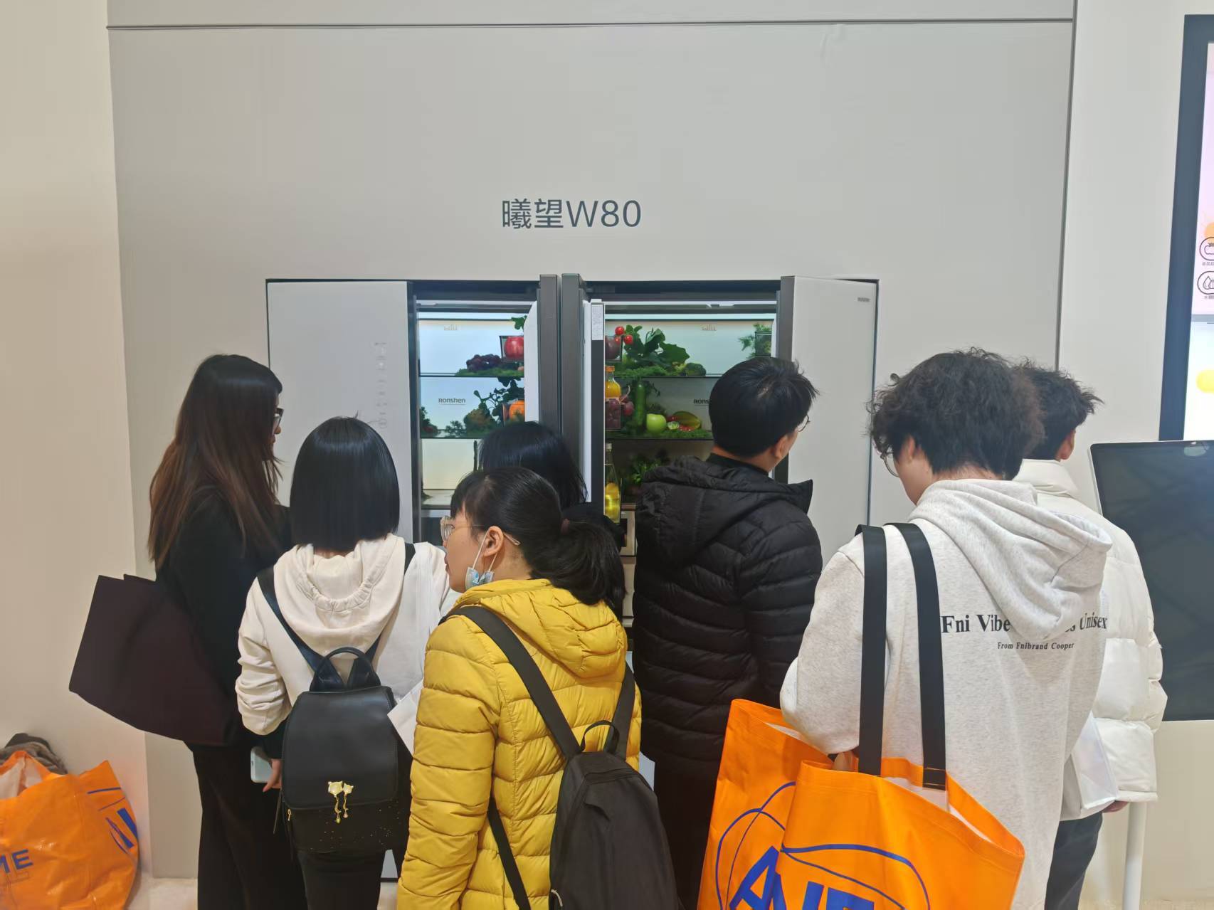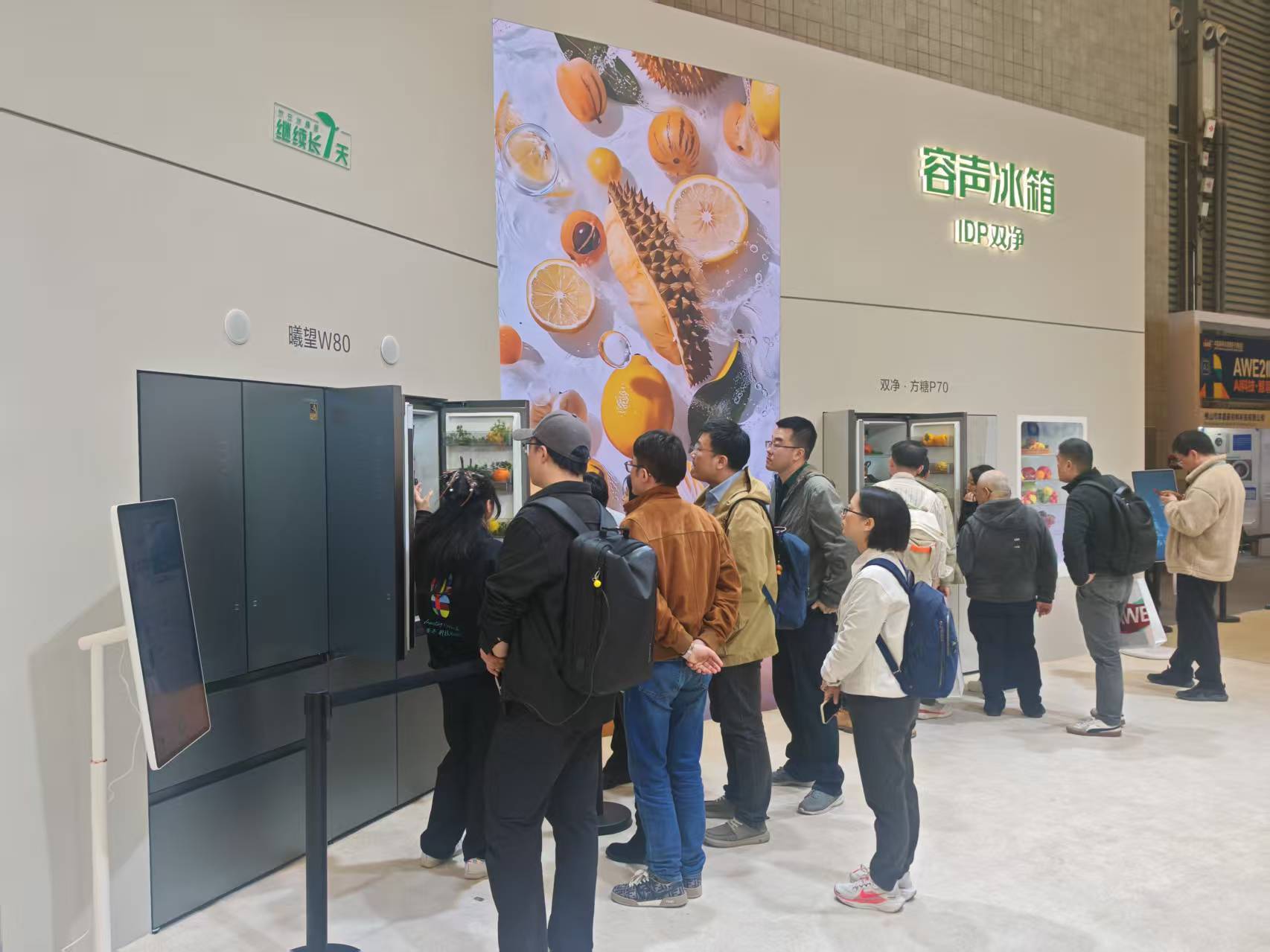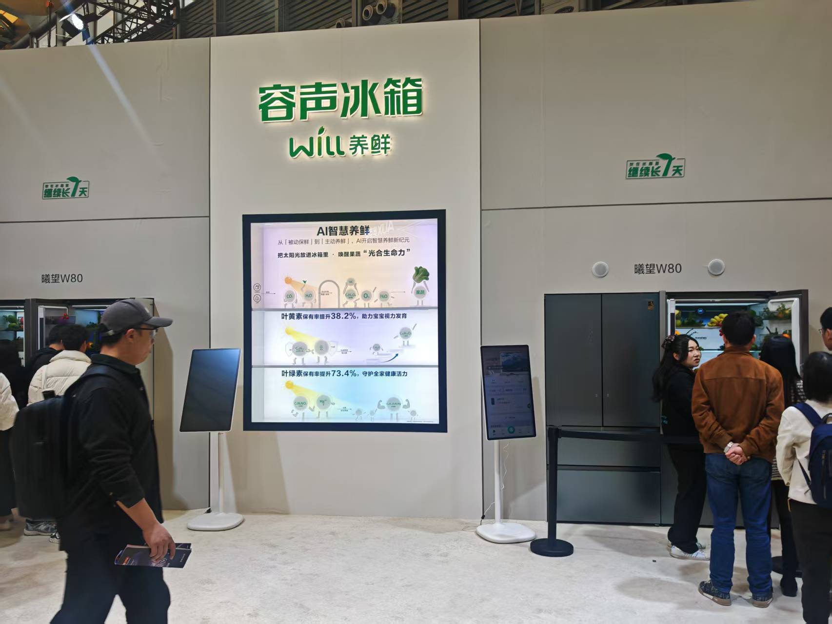 WILL系列的展台上,摆放着新鲜的果蔬,工作人员介绍,该系列的自然养鲜技术能提升果蔬中的叶黄素、花青素等营养元素,适合注重果蔬保鲜的家庭;方糖系列则以小巧的机身和高颜值设计吸引了不少年轻观众,自动制冰功能和蓝光SPA养鲜技术,贴合了年轻人对冰饮和个性化存储的需求。